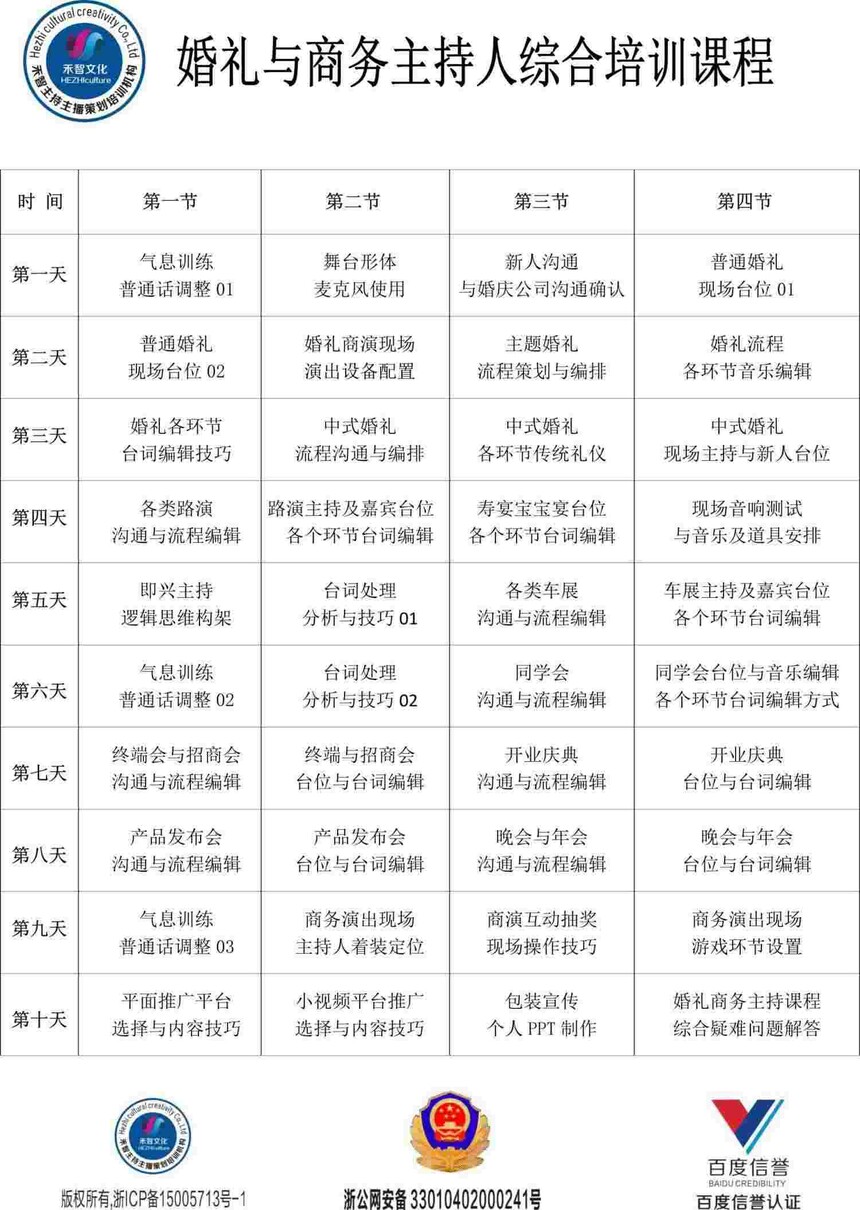 横亘主持策划培训机构:杭州市莫干山路1418-60号 新业大厦 1幢 219室